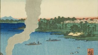Hiroshige,Utagawa Utagawa Hiroshige – One Hundred Famous Views of Edo – 37 – The Crossing of a Tile-Clad Gas Station at Hashiba on the Sumida River 歌川広重-名所江戸百景-37-墨田河橋場の渡かわら竈 解説