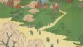 The shrine buildings and groves are simplified yet have a strong presence, indicating that they were centers of faith.