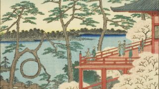The Enzamatsu in this ukiyo-e is an old pine tree that was in the garden of Aoyama Ryugan-ji Temple in Jingumae, Shibuya-ku.