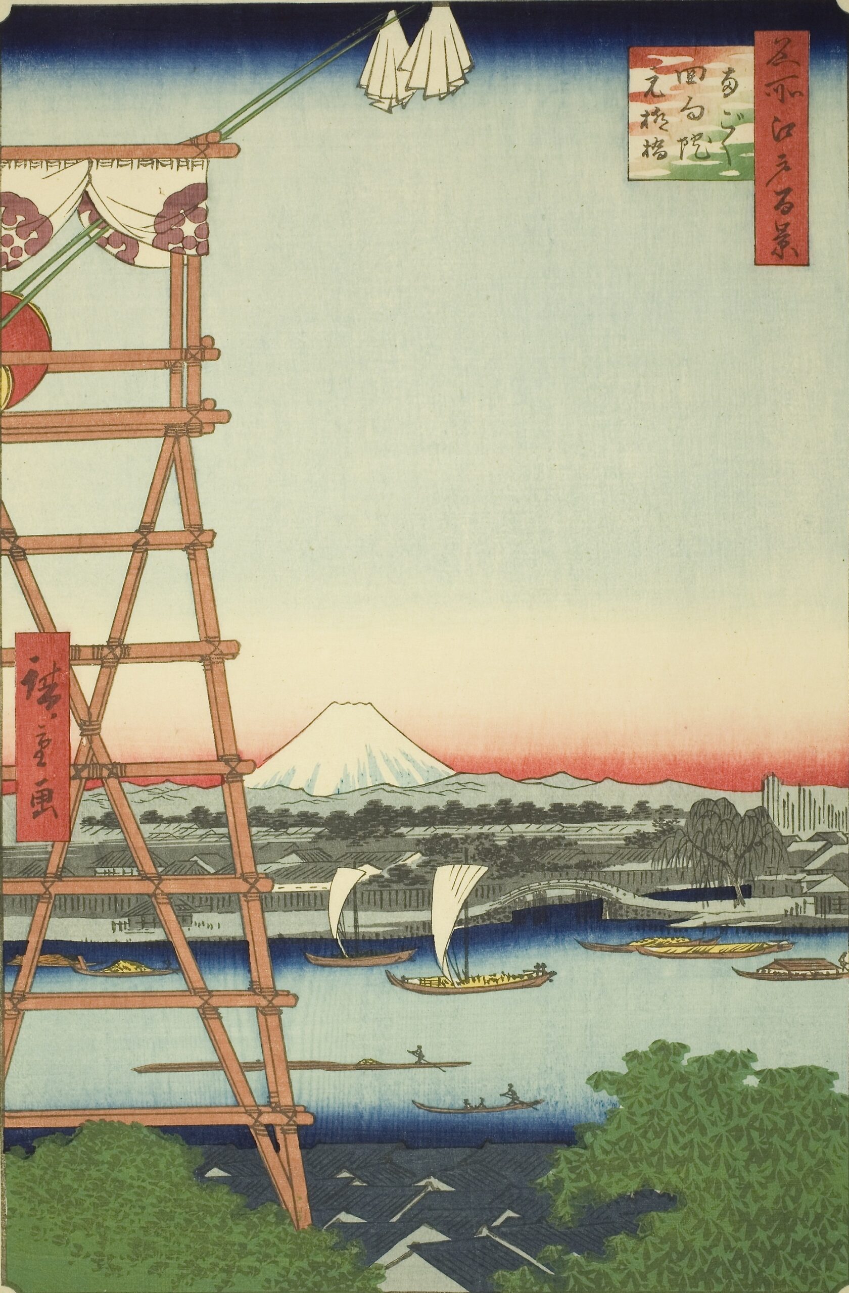 Hiroshige boldly depicts the waterfront space, expressing the open, spacious landscape of Edo.